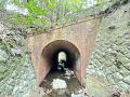 | 下流の東側は車道が上を通っている為、拡幅 されている 一応車道ではあるが、車種を選ぶ 上流の西側は坑門がなく、岩盤に直接アーチ環を 嵌め込んでいる 岩盤という堅固な地質だからなのか、アーチ環が 3層しかない 2025年12月訪問 |