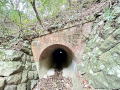 | 名称は南側の「目明踏切」より 上流の西側は坑門を傾斜させている 下流の東側は煉瓦坑門を持たず、岩盤の隙間 に石積みを嵌め込むような施工となっている 煉瓦3段積みの笠石がある 2025年12月訪問 |