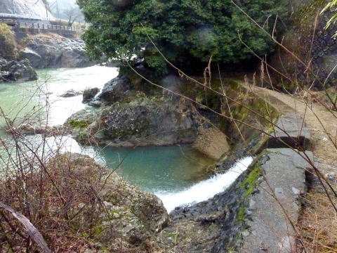 切込みの入った堰堤があるため、足を濡らさずに進む