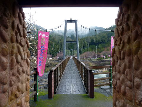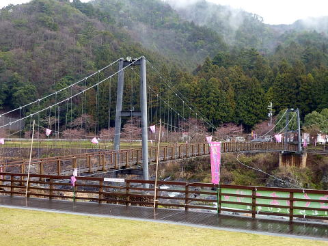 でしょう。県道方面から真新しい吊橋が架かっていま