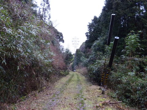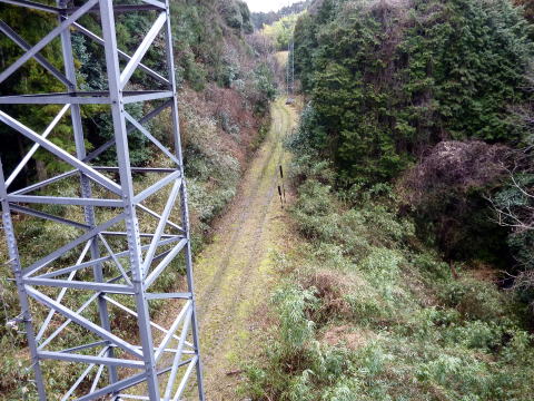 何度でも振り返りたくなります、この景色。。。 廃線後に高圧電線を通しているようですねえ。 |