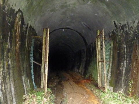 鉄塔を避けて轍がトンネルの中に消えていきます。 関係車両はトンネルを通過して行くんですねえ。。。 羨ましい。。。 |
