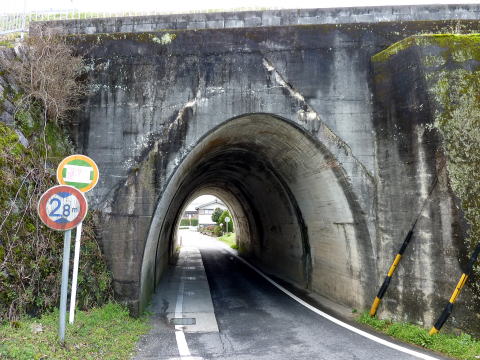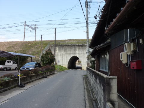 その県道と近鉄大阪線が交わる場所は、比較的新しい トンネルで県道が下を潜っておりました。 釣鐘型の断面、1車線分しかない幅員。。。もっと広く 施工できるような気がしますが、なんでかこのサイズ。 しかも北側は左に道が反れているので見通しが悪い し。。。県道なのになあ。 |