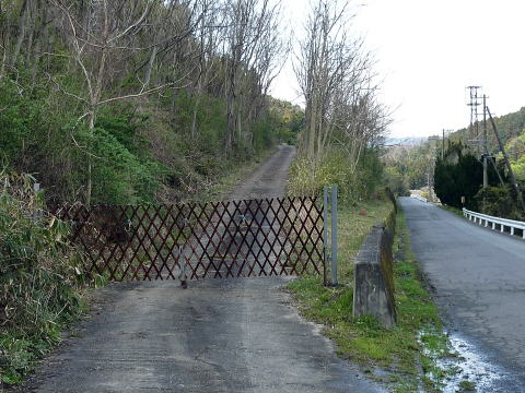 その道は錆びた横引きのシャッターで封鎖されており、 車は通ることはできません。 車をここに停車して、脇から通らせてもらいます。 ここからまさか、あんなに歩く事になるとは。。。 |
