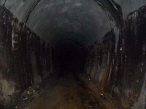 東側坑口が遠のきます。。。 いまだ西側の光は見えず。。。 |
