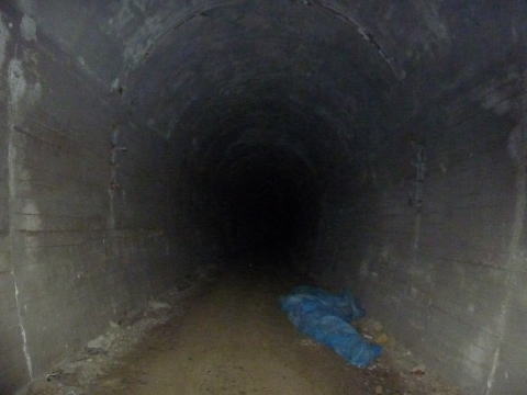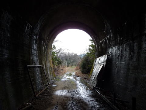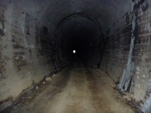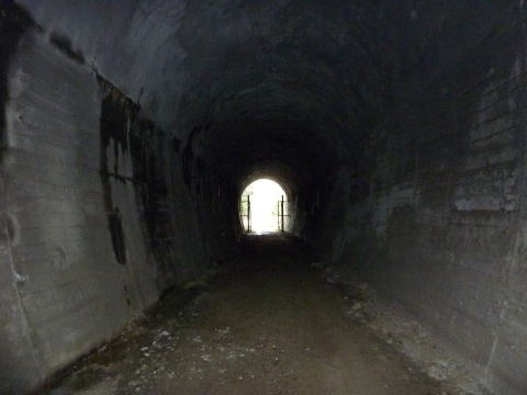 予想通り洞内はやや左にカーブし、やがて反対側の 光を許すようになりました。 350mでも結構な長さだと思います。 |