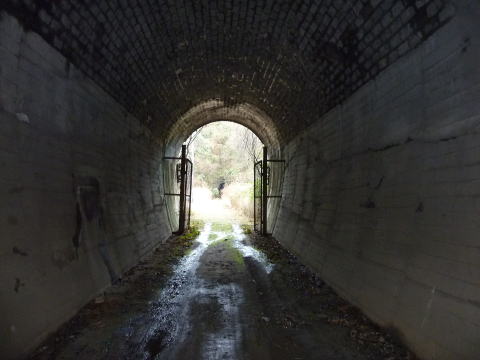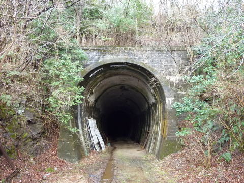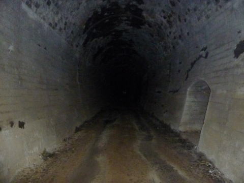天井アーチはモルタルで補修は受けているものの、 両サイドの切石積みはしっかりと残されています・ 左手には碍子の遺構も残っていたりします。 |