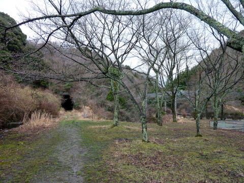 梶ヶ広トンネル、西側坑口。 3方を緑に囲まれ、路面もダート。まさに自然に取り 囲まれて余生を過ごしております。 |