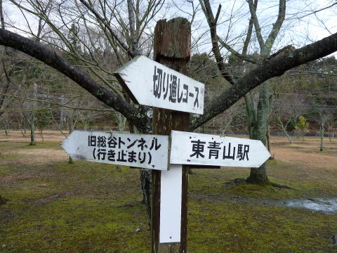 少し行くとこのような看板が。 よく他サイト様でも見かけた案内標識です。 。。。行き止まりから出てきてしまいました。。。 で、右前方には東青山駅が。。。 |