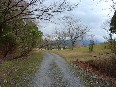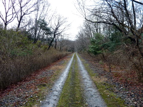 いつしか左手の公園は姿を消し、芽吹く前の裸の 木々がもの寂しさを引き立たせます。 かつてはここを鉄道が走っていたんですねえ。。。 |