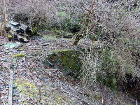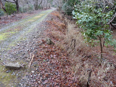 左脇をよく見てみますと、鉄道遺構?なんでしょう か、鉄製の杭が刺さっています。 |