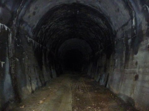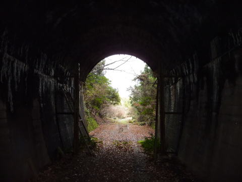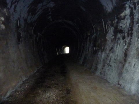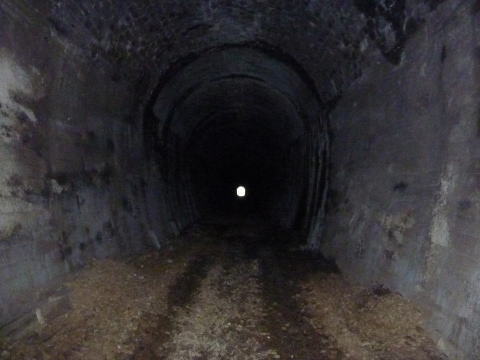 遠のく東側坑口。。。 ここからは明かり区間よりも暗闇が圧倒的な長さで 支配します。。。 |