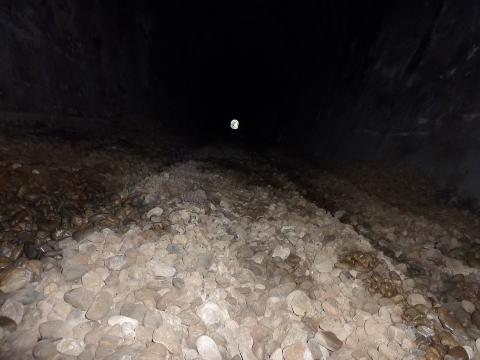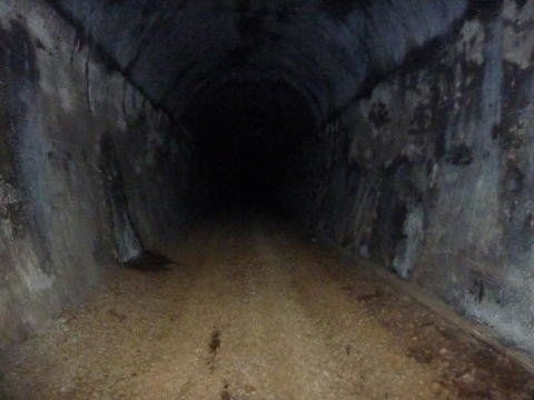 続く闇。。。 延長800mでも、直線であれば光は届くと思います ので、やはり徐々に曲がっておるのでしょう。 |
