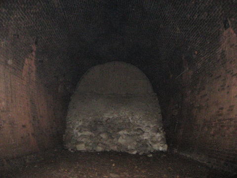 砕石の上に乗って南側を撮影。左に曲がる洞内の先に