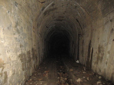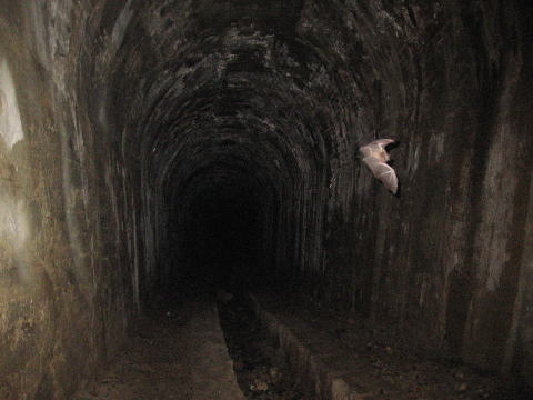 キセキの一枚!こうもりさん激写! しかしこのトンネル。。。 下り勾配で湿気たっぷり。。。。まさに地底に繋が るトンネルの様相で、かなり恐ろしいです。 |
