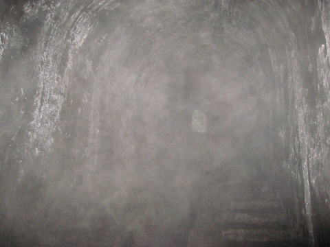 よととの魂を挫く最後の一撃!下りトンネル、無風 、こうもり大量+靄でノックアウトです。 写真はよととが足を運んだ最深部で振り返り撮影 しました。もう恐怖に勝てません。退散だあああ。。。 |