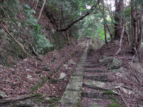 登山道から再び外れて少し進みますと。。。 をを?階段があるぞ?? |