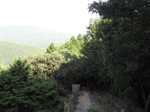 振り返ると、木々の切れ間から、これまた光の加減 で見えませんが、京都市内の町並が見える絶景ポ イントが残されていました。 HP少し回復! |