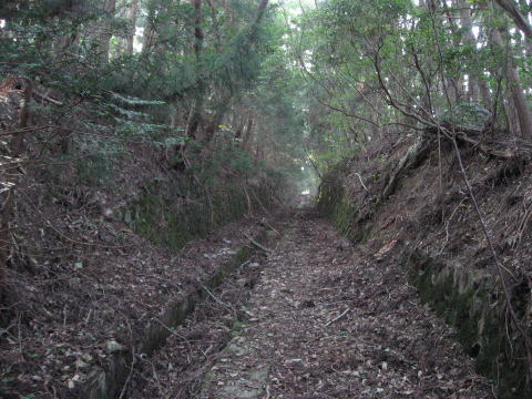 上り坑口より。枯れ木枯葉がうず高く積もり、路面 が消え去っています。 |