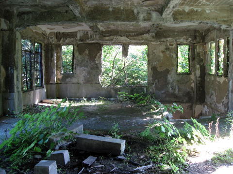 2F全景。 ここまで風化が進んでしまうほど、過去のものと なってしまった建物。。。往時はどのような賑わいを 見せていたのでしょうか。 |