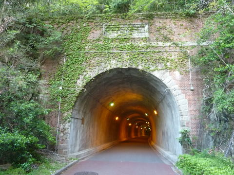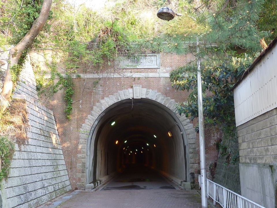 | 旧和歌山水力電気(和歌山電気軌道、のちの南海電気鉄道の軌道路線)が掘削した鉄道用隧道。 1971年(昭和46年)廃止。現在は遊歩道として利用されている。 坑門は煉瓦でイギリス積み。笠石、帯石に切石を使用。要石も存在し、迫石は三重県で多く見られる楯状迫石となっている。 坑門の扁額、北側には「鵬雲洞 明治44年11月 書」南側には「而開圖○」とある。 内部は複線が敷ける広さを有し、アーチは吹き付けで覆われており、元の状態は確認できない。また退避坑の跡も確認できる。 |
