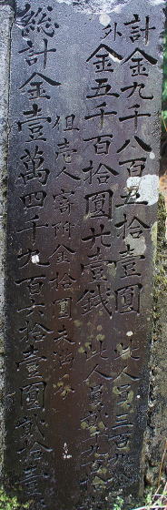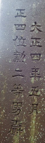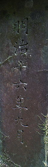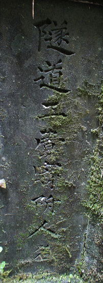![]() 甲斐國公裔孫 藤原實美 甲斐国公=藤原公季(フジワラノキンスエ)と思われる。公季は藤原北家閑院流の祖で、国公は甲斐公と呼ばれる。 三条実美はその藤原北家閑院流の一つ、三条家の嫡流だそうなので、「藤原實美」という印を使ったと思われる。 裔孫は遠い子孫や末の子孫という意味があるので、「甲斐國公裔孫」の印は、甲斐国公の末の子孫であることを示すものと思われる。 この両印が押されることによって、この隧道の重要性を示すものと思われる。(五位堂氏、Wikipedia参照) |