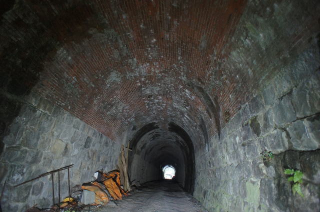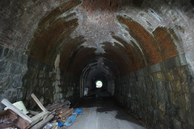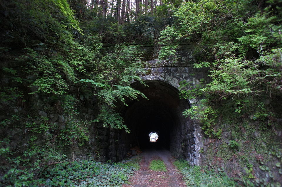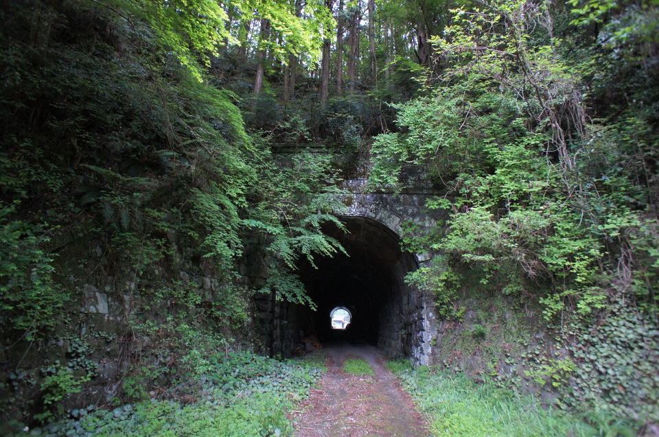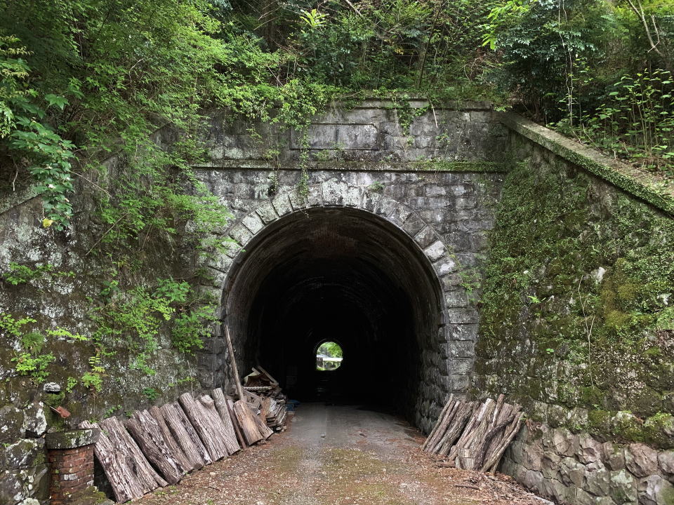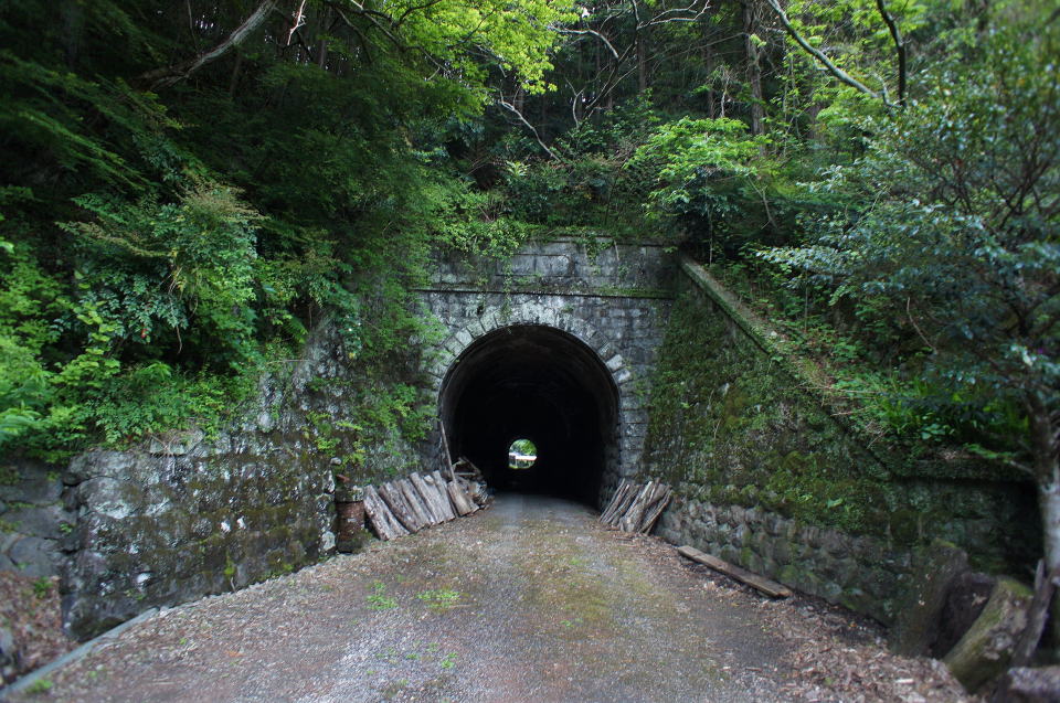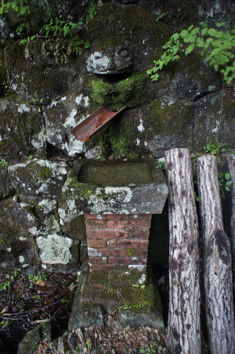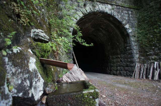 | 須崎市側の扁額には「樫迫隧道」とある、らしい。土佐市側の扁額には隧道探訪様によると「遠運通利」とあるようです。 総切石造りで、翼壁がさらに重厚感を醸し出している。 須崎市側の翼壁に獅子の頭を象った水抜きがあり、下部に煉瓦と切石を使って手水のようにしている。他の隧道にもあっても良さそうな好物件。 |