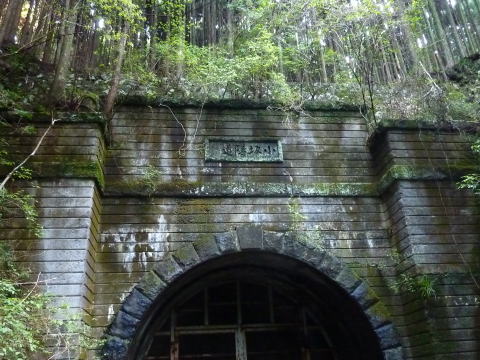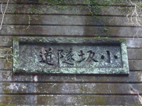 | 国道42号線脇に残る旧隧道。扁額では「小坂隧道」になっている。 地形図等では「小阪隧道」とされることが多いそうだ。現在の字名は小阪。ただし峠は明治の地形図では「小坂峠」と表記されているようだ。 坑門には下見板張り風の模様を施し、笠石、帯石も備える。要石、迫石も切石を使用しているようだ。 内部はコンクリートで覆われている。土木遺産登録には、インパクト、珍しさが足らないか。 |