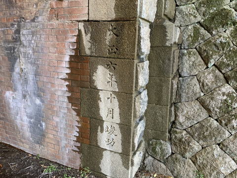 冠木門タイプで、切石と煉瓦を組み合わせた坑門は重厚感がある