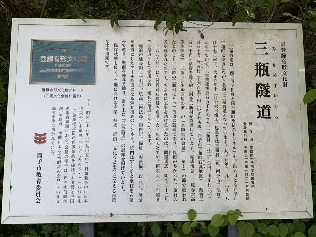 西予市宇和町にある当隧道だが、起業は三瓶村(現西予市三瓶町)で出資額も多いことからこの名前が冠されたそうだ