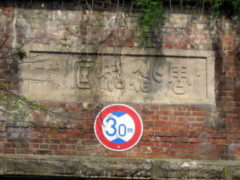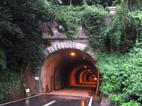| 笠石上に突き抜けるピラスターを有する見た目も荘厳な隧道。 基本形は冠木門タイプ。写真では見にくいが4つのピラスターを持つ。 両サイドの坑門ともに原型をしっかり留めており圧巻。 胸壁がレンガでイギリス積み。他は全て切石を配している。 内部は全てコンクリートで覆われており、往時の面影は見ることができない。 |