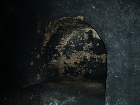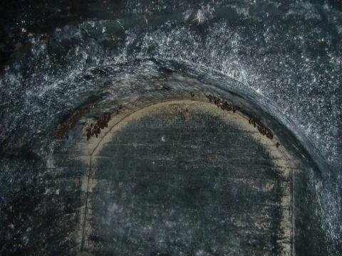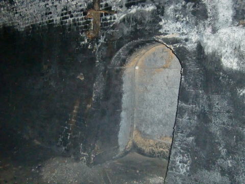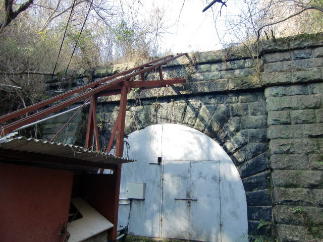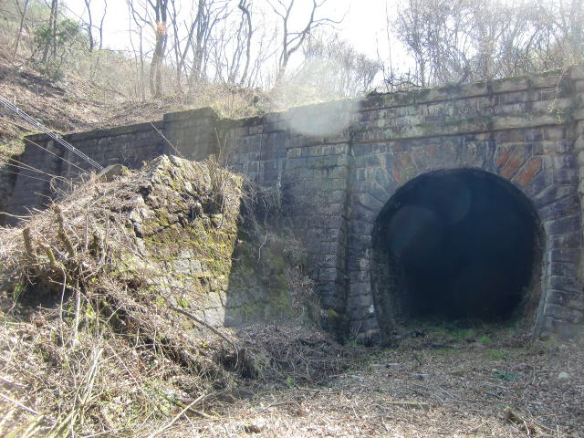 竣功当時からの姿を留めている感じがする退避 坑。2層の半円アーチも薄っすら見える気がします。 |