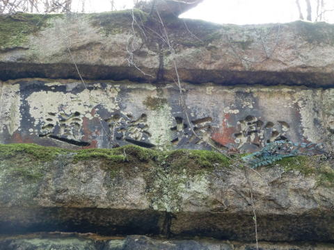 これまた古い補修の跡です。 混ぜ込みの多いコンクリートでの補修… 戦前でしょうねえ。 |