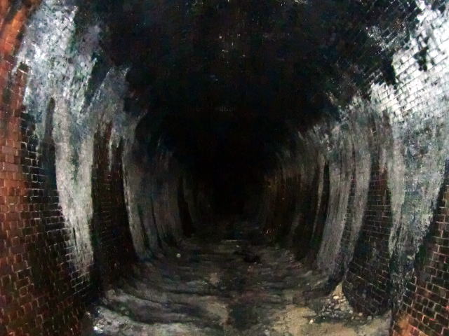 うぬぬぬぬ…これはイカン… 閉塞トンネル特有のこの湿気が撮影をますます 困難なものにしていきます。 |