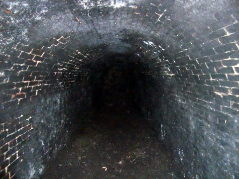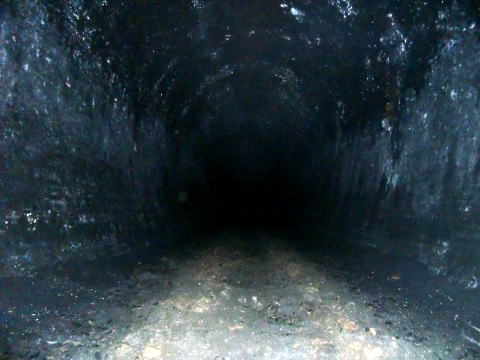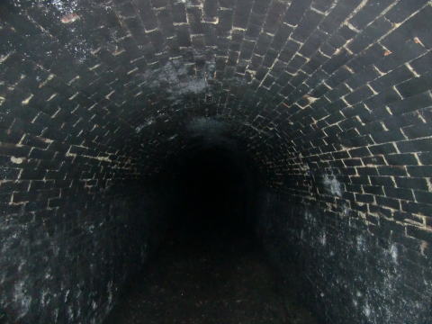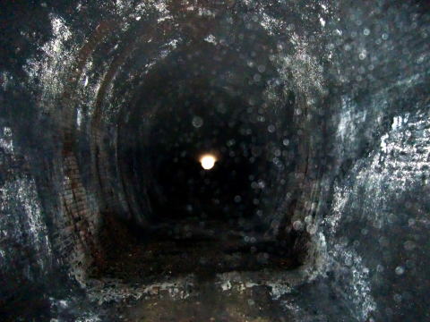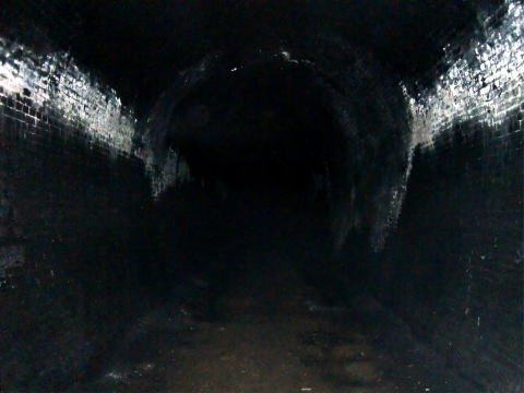 振り返り。 ここまで進んできました。 左側の側壁はコンクリ補修を受けています。 |