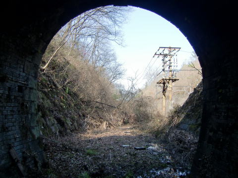 建物地点から振り返り。 やはり光は全く届いておりません。 1000m級の事実上閉塞トンネルは、実はこれが 初めてです。…いや、もう一件あったな…奈良の 未成トンネル…未レポですが… 貫通トンネルに比べて段違いに恐怖を感じます。 そそくさと撤退、撤退、と。 |