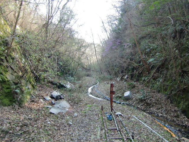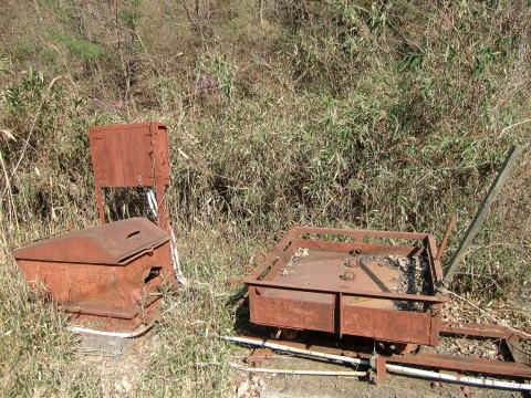 そういえば、上にこんな遺構が置いてありました。 このトロッコでなにかしら運搬していた模様です。 |