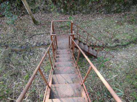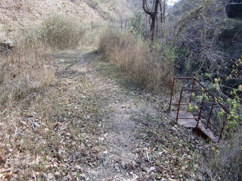 このような階段があり、容易に当時の線路敷きに 降り立つことができます。 |