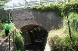 煉瓦アーチ | 土木学会選近代土木遺産Cランク。 小口換算5層巻きの欠円アーチを有する。 実際は内側小口1長手1交互入れ替え、外側小口2長手1の2層 巻き。先の宮川橋、寺谷川橋とは逆の配列。 坑門はイギリス積み。内部アーチもイギリス積みは特殊。 市街地から生石山砲台へ続く主要軍道にある。 |