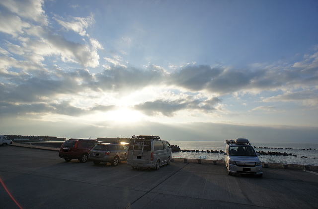 ![]() 早速、海上橋袂の駐車スペースに皆で移動。ここから全てが始まります。 ああ、わくわくするぞー! |