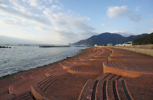 ![]() 用宗海岸の駐車場から大崩海岸方面を見ることができました。 |