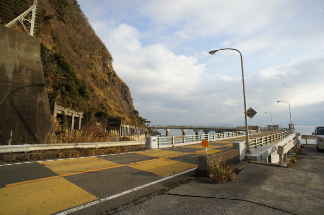 ![]() こちらが海上道路橋以前の旧道、洞門群です。 ネットで見るばかりだったこの映像。それが今、眼前に…視界が曇って良く見えません…←大ゲサw |