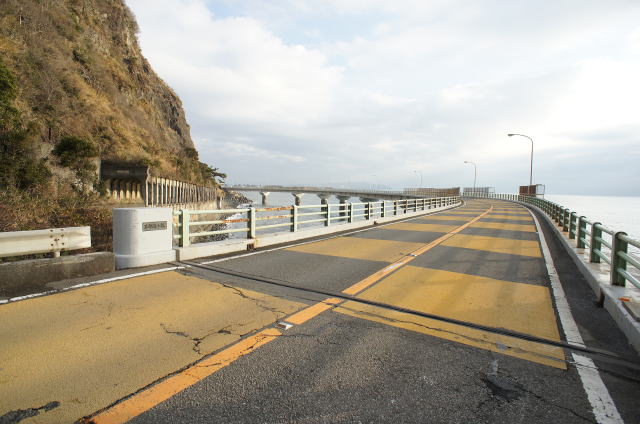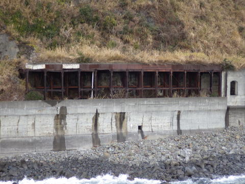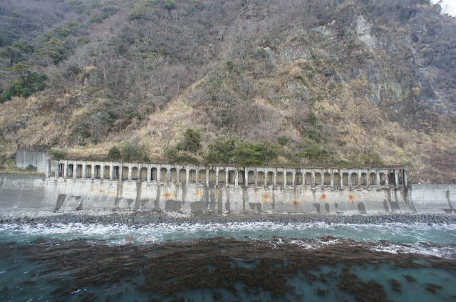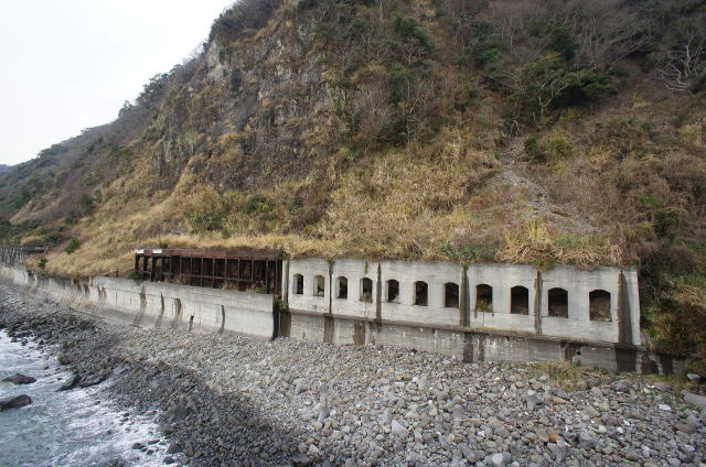 ![]() 石部海上橋。1972年(昭和47年)7月竣功。 1971年7月5日、岩盤崩落により第5洞門が圧潰。1名の犠牲者が出たといいます。 それから僅か1年の間にこの海上橋が完成したそうです。当時は国道150号線という基幹路線だったので、再建は 急務だったのでしょう。 |