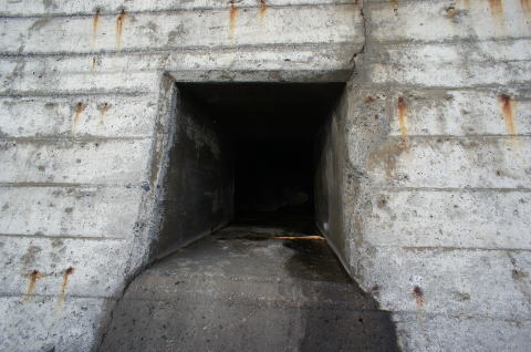![]() いちばん右側にある洞門。こちらは第3洞門です。こちらにもかなりの土被りがあります。 で、四角い穴がどこにあるかというと… |