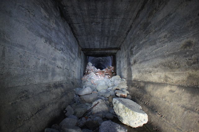 ![]() 洞門下のコンクリBOXと煉瓦アーチの接続部。こういう光景は腐るほど見てきましたが、横坑は初めてですな。 で、この瓦礫はなんなんでしょうか。奥で崩れた坑道や煉瓦が、波が侵入した際に運ばれてきたんでしょうか。 |
