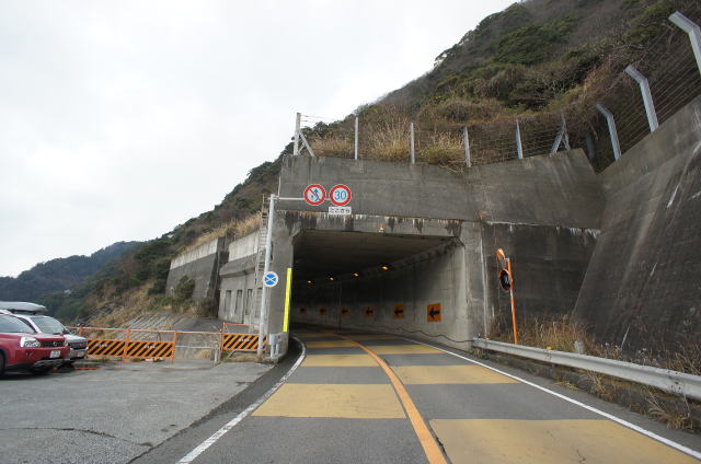 ![]() 旧道洞門群をつっきり、海上道路橋の駐車場まで戻ってきました。 この場所で旧道と現道が合流し、石部隧道に突っ込みます。手前のこの洞門は現道改修時に新設されたものです。 折角なんで、石部隧道もチェックすることに。 |