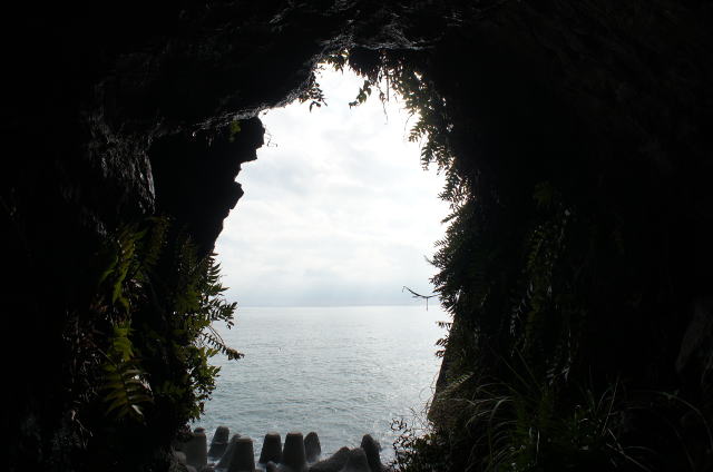 ![]() 見上げる所にこの穴が…なんじゃこの残り方は… 上部に県道の洞門があり、法面はみっちりコンクリ擁壁化。波打ち際の法面も最近になってコンクリ吹き付けされた ようで、ますますアプローチが困難になっております。 四方が人工物に囲まれ、ここだけ素掘りの状態で穴が開いています。よくここだけ残ったものです。 |