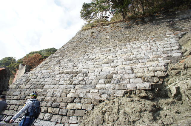 ![]() まだ見てませんが、恐らくは隧道の横っ面だとは思いますが…すごい石積みです! 何十段あるんだ…。早速の壮観です。 |