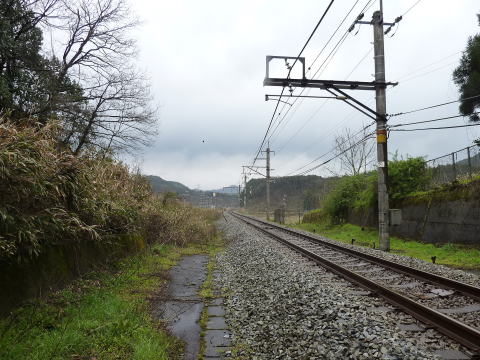 踏み固められたようなバラストは足場に安定感を もたらしています。枕木の跡は見ることができません。 |