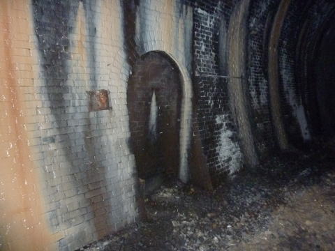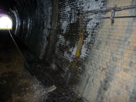同じ構造の退避坑ですが、水の流れによる変色が 著しいです。 |